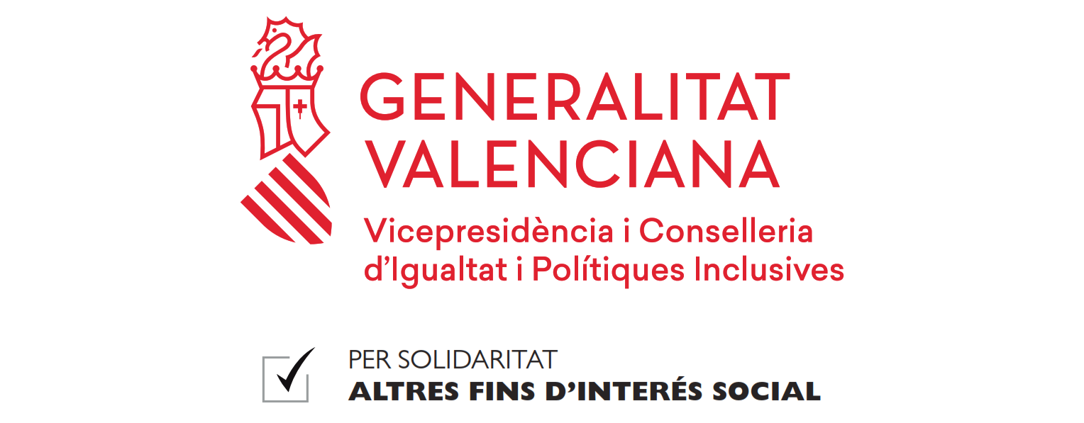 Nuestro proyecto desarrollados en la Comunidad Valenciana ha sido financiados por la Consejería de Igualdad y Políticas Inclusivas en la convocatoria de subvenciones dirigidas a la realización de programas de interés general para atender a fines de carácter social con cargo al tramo autonómico de la asignación tributaria del 0,7% del Impuesto sobre la Renta de las Personas Físicas, para el ejercicio 2021. Este proyecto se ha concedido por un importe de 6.294,36 euros
