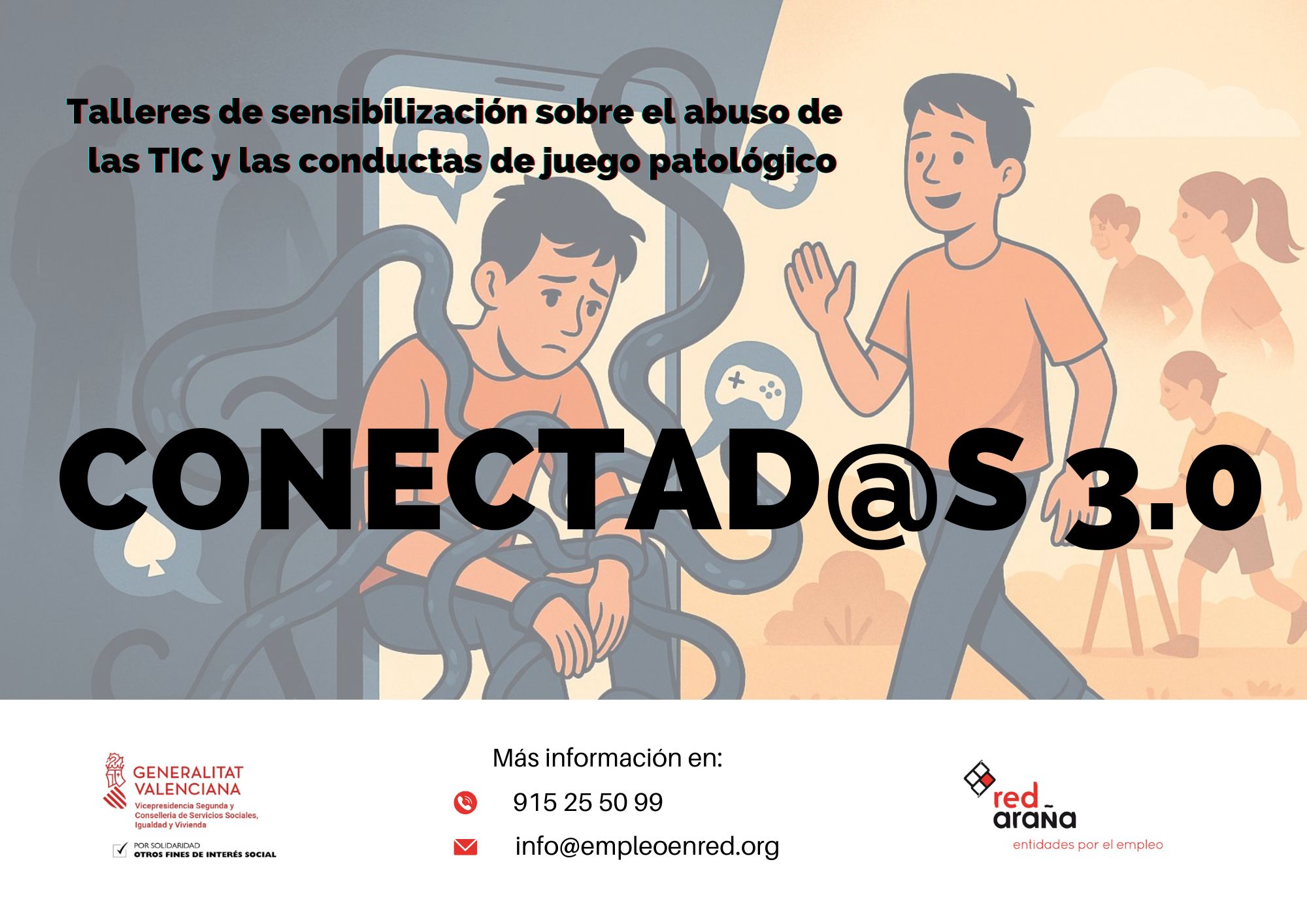 Desde - Hasta: 01/01/2025 - 31/12/2025 Programa orientado a la sensibilización de la población más joven respecto a los problemas que generan las adicciones a las nuevas tecnologías y al juego en línea. Para ello se realizan talleres de concienciación y prevención en centros educativos.