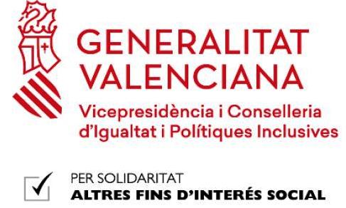 Los proyectos desarrollados en la Comunidad Valenciana han sido financiados por la Consejería de Igualdad y Políticas Inclusivas en la convocatoria de subvenciones dirigidas a la realización de programas de interés general para atender a fines de carácter social con cargo al tramo autonómico de la asignación tributaria del 0,7% del Impuesto sobre la Renta de las Personas Físicas, para el ejercicio 2019. Este proyecto se ha concedido por un importe de 6.010,62 euros